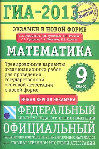 Евгений Бунимович «ГИА-2013. ФИПИ. Математика. Экзамен в новой форме. 9 класс.» и выбрать удобный способ его получения: самовывоз, доставка курьером