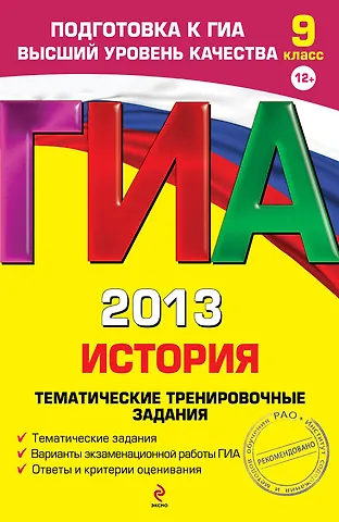 Пособие адресовано выпускникам 9-го класса и предназначено для подготовки к государственной (итоговой) аттестации (в новой форме) по истории. Приводятся задания по основным учебным темам, знание которых проверяется экзаменом, а также тренировочные варианты, полностью соответствующие по содержанию и структуре экзаменационным заданиям ГИА 2013.