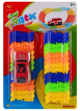 Мы сначала купили ребенку 1 трек, получился круг, потом поняли, что хочется больше и купили сыну ещё три трека и объединили в один, получился один огромный трек по размеру манежа. К каждому комплекту прилагается джип, мы покупали в оффлайн-магазине, специально выбрали 2 красных и 2 синих в общей сложности. Нужно вставить батарейку и джипы очень быстро едут друг за дружкой, синие почему-то быстрее, для нас загадка - почему. Ребенок обожает играть, но советую сразу несколько брать, одного трека мало будет!