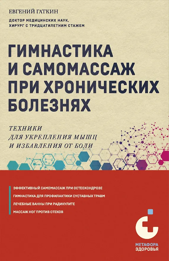 Не можете «разогнуться» с утра, вставая с кровати? Боль в спине мучает внезапными приступами и вынуждает использовать трость? Постоянные отеки и общая усталость? Автор книги уверен, чтобы избавиться от этих неприятных симптомов, нужен комплексный подход, включающий не только современные медицинские технологии, но и работу над собой. На страницах книги вы познакомитесь с техниками самомассажа и гимнастики, которые содержат специальные приемы мышечной тренировки, пассивную гимнастику и самомассаж, занятия для восстановления анатомических соотношений в позвоночнике, комплекс суставной гимнастики и лечебные ванны. Благодаря ним вы сможете укрепить мышцы без лишней нагрузки, восстановить здоровье
