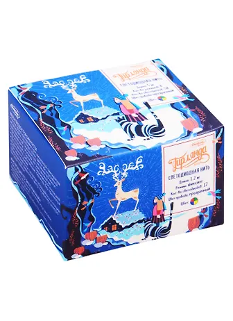 Малюсенькая коробочка - 5х6х4 см. Длина провода до первого светодиода, вместе с вилкой 76 см. Лампочек 12. Цвета - красный, голубой желтый. Горит постоянно, без переключения режимов. Длина части со светодиодами - 1 метр. Вилка в форме елочки со снежинками, точечками и надписью «С Новым годом!», с другой стороны - «Да будет свет!».
