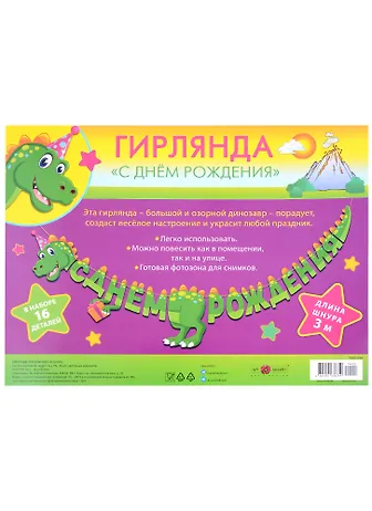 Очень веселая праздничная гирлянда, которая определенно задает нужное настроение во время празднования дня рождения детям. Гирлянда довольно качественная, хорошо и легко крепится с обоих сторон. За счет того что она длинная, то занимает основное место в качестве украшения. Все буквы аккуратные и ровные, из плотного картона, отлично весят на шнуре и не перекручиваются.