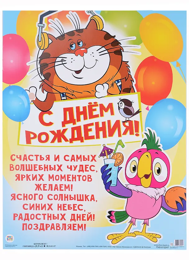 Гирлянда "С Днем рождения!" с плакатом А3 0,9м