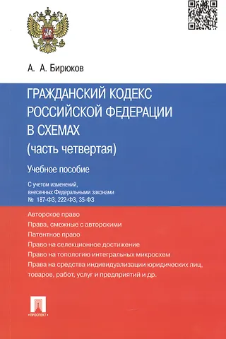 В настоящем пособии читателю предлагается изложенное в виде схем, таблиц и определений основное содержание части четвертой Гражданского кодекса Российской Федерации, содержащей нормы важнейшей подотрасли гражданского права — права интеллектуальной собственности. При составлении схем были учтены изменения, внесенные Федеральным законом от 12 марта 2014 г. № 35-Ф3 «О внесении изменений в части первую, вторую и четвертую Гражданского кодекса Российской Федерации и отдельные законодательные акты Российской Федерации».