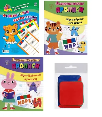 Комплект из 2-х книг + карты-схемы + карточки: Главные правила 4 в 1 (Фонетические прописи: Звуки и буквы - мои друзья. Звуко-буквенный тренажер. Фонетические карточки. Фонетические карты-схемы)