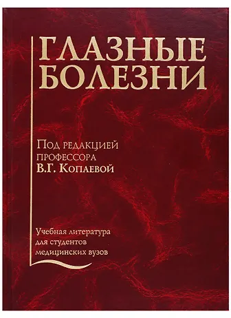 Учебник «Глазные болезни» под редакцией профессора В.Г. Копаевой составлен в соответствии с программой медицинских вузов по офтальмологии. Содержание учебника удовлетворяет требованиям федерального государственного образовательного стандарта высшего профессионального образования. Издается с 2002 г. по инициативе Департамента образовательных медицинских учреждений и кадровой политики МЗ РФ, рекомендован Учебно-методическим объединением по медицинскому и фармацевтическому образованию в вузах России, был удостоен диплома и медали Всероссийского выставочного центра. Выпущено 3 издания: 2002, 2008, 2012 г.