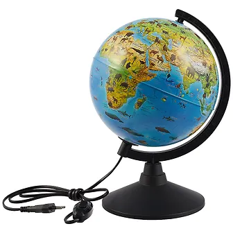 Замечательный подарок для ребёнка-дошкольника! Двоюродный брат любит читать, смотреть фильмы про нашу планету, увлекается географией. Увидела в интернете такой глобус, подумала, что ему будет интересно, и не прогадала. Вечером ночник, днём объект изучения. На глобусе подписаны материки, проливы, моря, страны не обозначены.