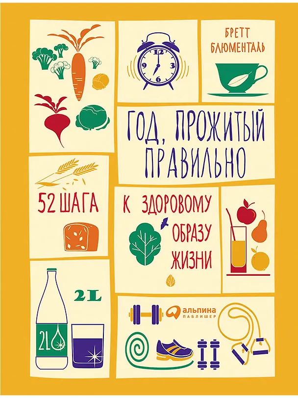 Год прожитый правильно 52 шага к здоровому образу жизни. Суть теории Бретта Блюменталя в том, что неделя за неделей надо добавлять в жизнь коррективы. И от такого темпа ты ничего не пропустишь, а только выиграешь. Что постепенное движение к цели намного более эффективно, чем резкое - все, завтра буду жить так. Это методика маленьких изменений, своеобразный тайм- менеджмент, в результате которого начинаешь вести здоровую жизнь без проблем и усилий. И стресса.