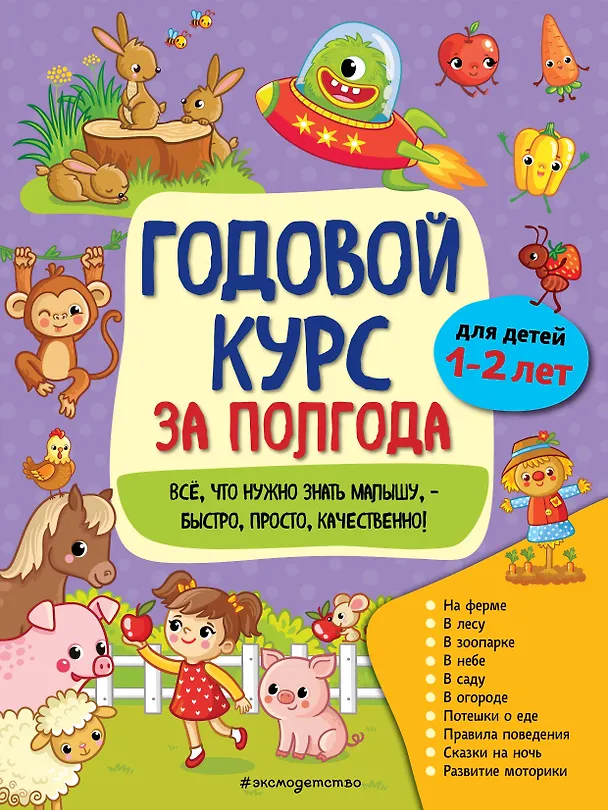 Выполняя несложные увлекательные задания, ребёнок расширит словарный запас, познакомится с животными фермы, леса, зоопарка, фруктами и овощами, разными видами транспорта, а также разовьет память, внимание, речь, мышление и воображение и мелкую моторику.