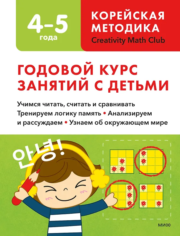 ГОДОВОЙ КУРС ЗАНЯТИЙ С ДЕТЬМИ 4–5 ЛЕТ – это эффективная программа обучения в творческой и игровой атмосфере от корейского Научно-исследовательского института креативной математики (Creativity Math Lab). Книги содержат разнообразные увлекательные задания и направлены на всестороннее развитие вашего ребенка в комфортной среде и без стресса. Даже 10 минут занятий в день по данной методике помогут малышу стать умнее и успешнее.