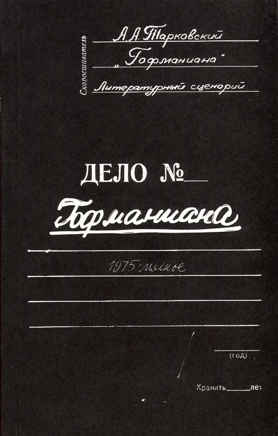 Киносценарий «Гофманиана», фильмпо которому так и не был снят, написан Андреем Тарковскимв 1974 году по заказу киностудии "Таллинфильм" и впервые опубликован в 1976 году в журнале "Искусство кино". Отдельным изданием текст сценария выходит впервые, его сопровождают две научные статьи — киноведа Олега Ковалова и филолога-германиста Ларисы Полубояриновой.