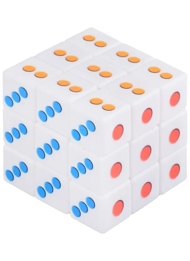 Кости на кубике-рубике—это здорово придумано. Можно использовать его как замену маленькому кубику для настольных игр, вставляя в какой-нибудь мешок, одеяло или что-нибудь подходящее, потом умело шатать, лишь бы он пол не упал. Можно так же использовать кубик-рубик для игры на полу, похожей на настольную. Можно ещё и крутить части кубика так, чтобы были видны где-угодно и сколько точек, например, три точки—в левом верхнем углу, три точки—посередине и три точки—в правом нижнем углу.