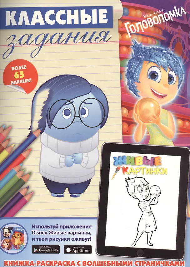Эта необычная книжка соединяет в себе увлекательные развивающие занятия и самые весёлые игры, в том числе с использованием высоких технологий. Рисуй, играй, решай, разгадывай, а когда увидишь страничку с таким значком , наведи на неё планшет или смартфон, на который у тебя скачано приложение Disney Живые картинки (Disney Color and Play). Ты перенесёшься в волшебный мир вместе с девочкой Райли и её эмоциями!