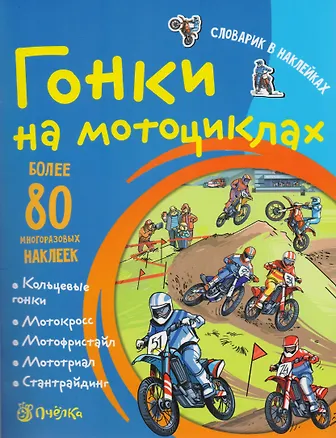 Ваш ребенок любит клеить наклейки? Наша книжка сделает его любимое занятие еще и очень полезным. Пять красочных тематических разворотов об увлекательном, зрелищном спорте для настоящих мужчин и более 80 многоразовых наклеек помогут ребенку расширить словарный запас, развить внимание, наблюдательность, мелкую моторику, а также узнать об особенностях и различных пяти дисциплин мотоспорта.