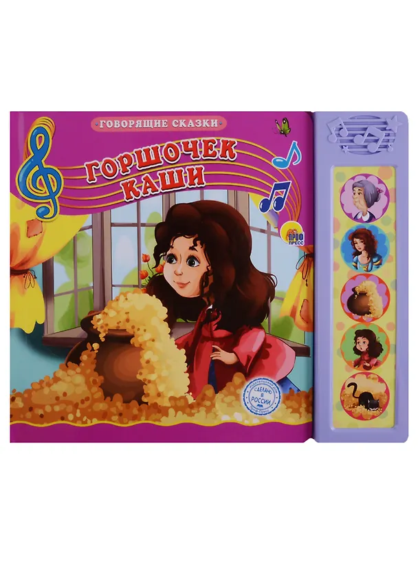 «Говорящие сказки»-это серия увлекательных книг с музыкальным модулем на 5 кнопок. Маленькие дети их очень любят!Стоит только нажать на специальную кнопку, и книга сама расскажет сказку малышу, пока тот занят просмотром красочных иллюстраций,расположенных на качественных картонных страницах. Интересные сказки,занимательные диалоги героев и песенки полюбившихся персонажей-все это вы найдете на страницах «Говорящих сказок».