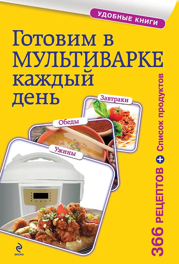 Небольшой формат и объем книги, удобная навигация, а также самые популярные темы: блюда в мультиварке, пароварке, для детей, быстрые блюда, выпечные изделия и т.д.