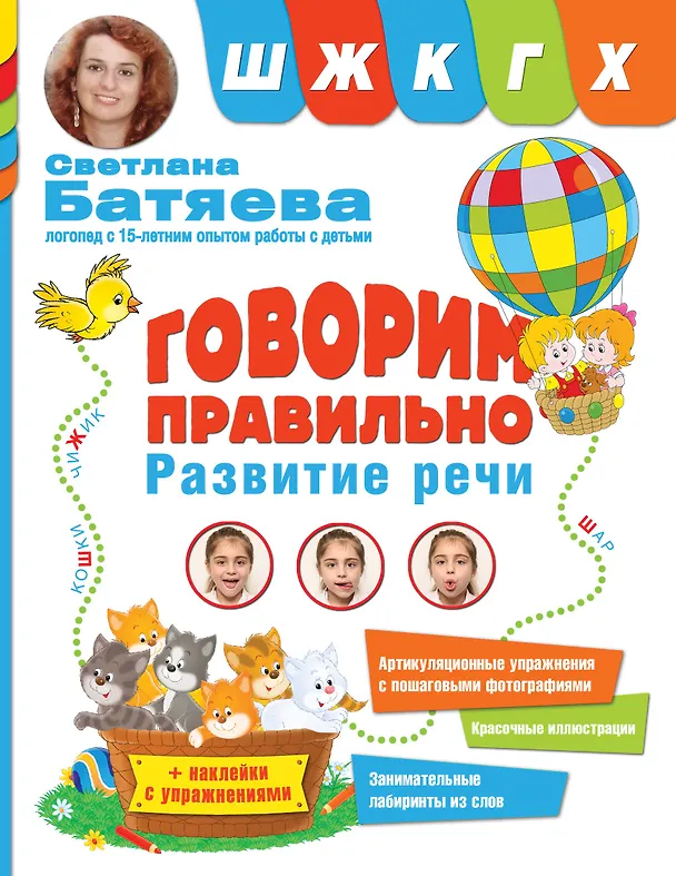 Звуки "Ш", "Ж", "К", "Г", "Х" Наклейки с упражнениями. Артикуляционные упражнения с пошаговыми фотографиями. Красочные иллюстрации. Занимательные лабиринты из слов.