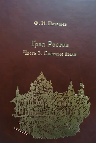 Книга Ф.И.Поташева «Град Ростов. Часть 3. Светлые были» Это книга, где вся жизнь Ростова-на-Дону наполнена творческим созиданием энергичных, разворотливых ростовчан, где южный красавец достойно проявил свою цельную, патриотическую натуру в мирных трудовых буднях, лихолетье иностранной интервенции. Здесь описаны прочные традиции роста на благодатной донской земле в степном краю древних курганов и современных мегаполисов.