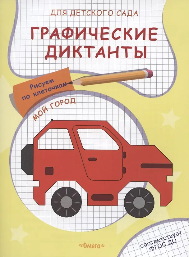 Небольшого формата пособие для тех, кто осваивает технику письма в тетрадях в клетку. Первая половина пособия - это задания по типу - обведи по образцу, а вторая половина - это графический диктант, где на каждой страничке дано схематическое задание, пройдя которое у ребенка получится картинка. Развивает навыки счета, а также навыки работы и письма на тетрадях в клетку.