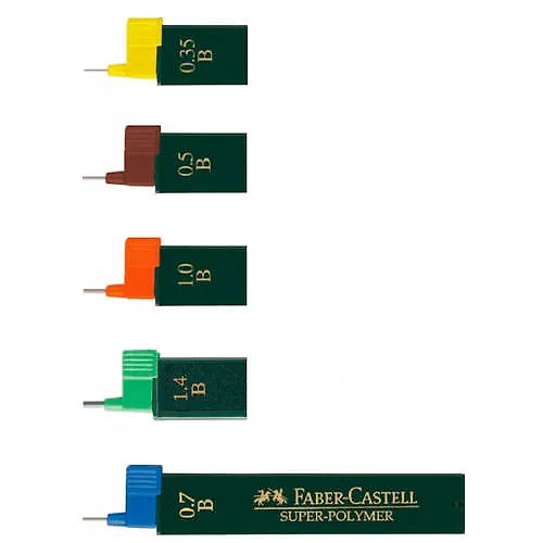 Графитные грифели SUPERPOLYMER 0,5мм, твердость HB, 12шт., Faber-Castell