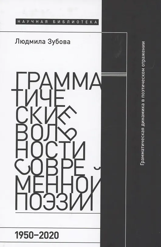 Современная поэзия, ориентированная на свободу языковых экспериментов, часто отступает от нормативных установок. В наше время поэзия с ее активизированной филологичностью — это своеобразная лингвистическая лаборатория: исследование языка в ней не менее продуктивно, чем научное. В книге филолога Людмилы Зубовой рассматриваются грамматическая образность и познавательный потенциал грамматики в русской поэзии второй половины ХХ — начала XXI века, анализируются грамматические аномалии, в которых отражаются динамические свойства языковой системы и тенденции ее развития. Среди анализируемых авторов Алексей Цветков, Виктор Кривулин, Елена Шварц, Владимир Гандельсман, Владимир Кучерявкин, Александр Л