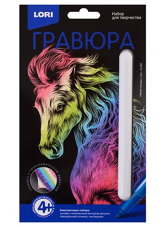 Симпатичная лошадка получилась,жаль только грустная. Ребенок любящий лошадей оценит этот подарок, да и человек который устал долго рисовать картины красками тоже , если вам хочется попробовать что нибудь новенькое и надоело таскать с собой краски,эта гравюра отличная и бюджетная альтернатива картинам по номерам.