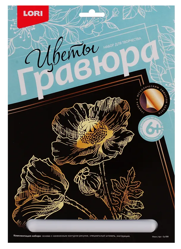 Гравюра - особый вид графического искусства. Сцарапывая верхний слой гравюры специальным штихелем, входящим в набор, ребёнок может самостоятельно создать настоящее произведение искусства и почувствовать себя гравером. Готовую гравюру можно вставить в упаковку-рамку. Размер гравюр 18*24 см.