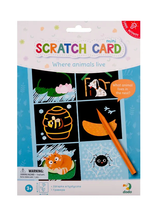 Разве можно нарисовать красочные картинки с помощью одной палочки и листа картона? Легко! Гравюра - это художественная мастерская в кармане. Принцип создания картинки -удаление верхнего черного защитного слоя при помощи штихеля! Предложите малышу поразмышлять какое животное спрятано на картинке и проверьте вместе.