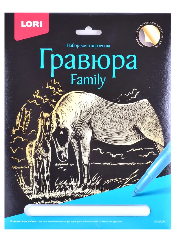 Увидев данную гравюру, решила купить ее себе в коллекцию. Выглядела довольно красиво и почему бы не взять по скидке. Что могу сказать. До сих пор не доделала ее. Единственная работа с лошадью, которую не доделала и не могу заставить себя сесть ее и сделать. На обложке все выглядело довольно просто, но по факту оказалось, что тело лошади состоит просто из множества штрихов, которые надо делать максимально аккуратно и очень тонким штрихелем. Было желанием просто взять и закрасить все сплошным слоем, но понимала, что вид у работы будет тогда совершенно другой. К жеребенку претензий нет-выполнен просто мое почтение, но вот кобыла очень сложная. Возможно когда-нибудь я соберусь с духом и доделаю эту работу, жалко, что просто так лежит, но пока не могу взять себя в руки.