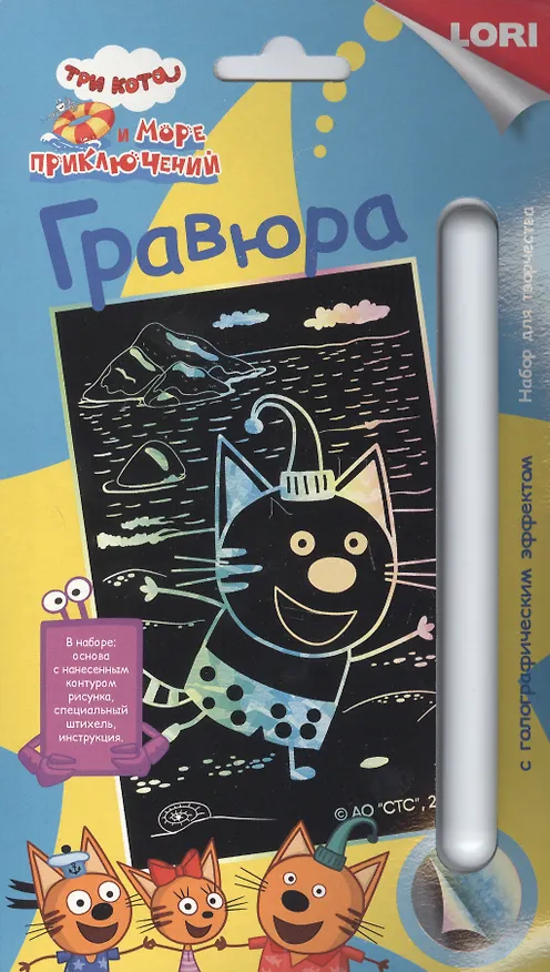 Гравюра - особый вид графического искусства. Сцарапывая верхний слой гравюры специальным штихелем, входящим в набор, ребёнок может самостоятельно создать настоящее произведение искусства и почувствовать себя гравером. Состав набора: основа с нанесенным контуром рисунка, специальный штихель, инструкция.