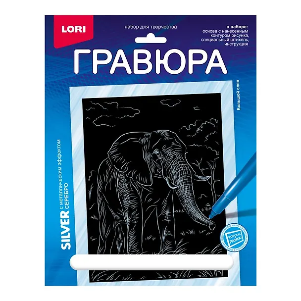 Гравюра - особый вид графического искусства. Сцарапывая верхний слой гравюры специальным штихелем, входящим в набор, ребёнок может самостоятельно создать настоящее произведение искусства и почувствовать себя гравером. Состав набора: основа с нанесенным контуром рисунка, специальный штихель, инструкция.