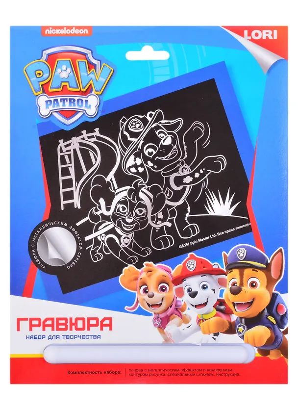 Гравюра Щенячий патруль большая с металлическим эффектом серебро "Скай и Маршал"