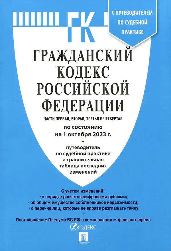 Гражданский Кодекс РФ.Части 1, 2, 3 и 4 по состоянию. на 01.10.23 с таблицей изменений и с путеводителем по судебной практике