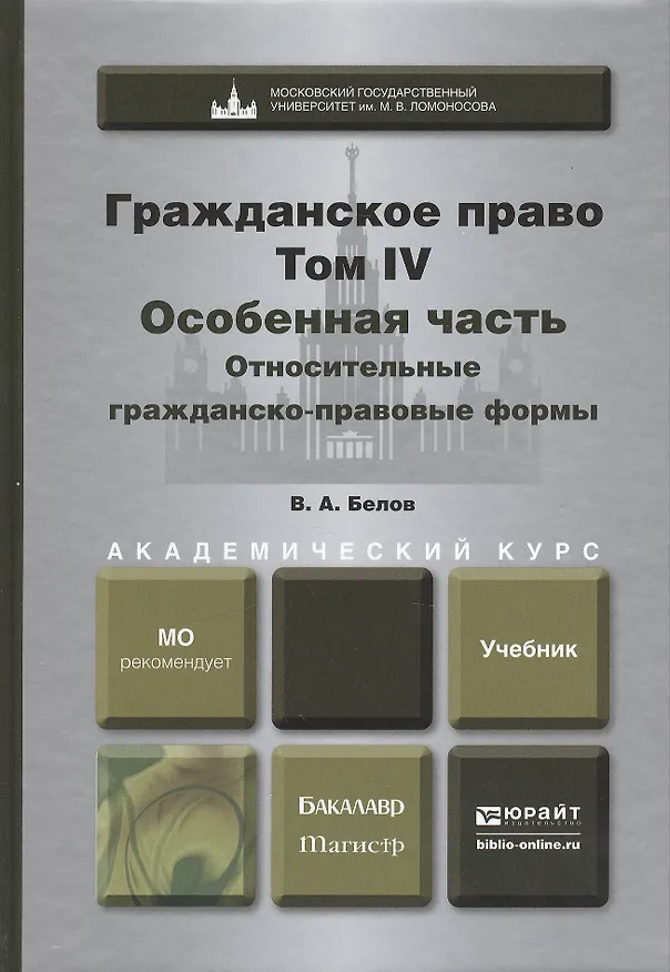 Настоящая книга завершает теоретическую часть авторского Учебника по гражданскому праву В. А. Белова — доктора юридических наук, профессора кафедры коммерческого права Московского государственного университета им. М. В. Ломоносова. В данном — втором — томе Особенной части (общим счетом — четвертом томе Учебника) российского гражданского права изучаются относительные гражданско-правовые формы, т.е. обязательственные, восстановительные и компенсационные правоотношения, правоотношения ожидания, секундарные и корпоративные права.