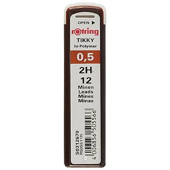 Грифели - 0,5мм, 12 штук, "Rotring Tikky", 2Н, Rotring
