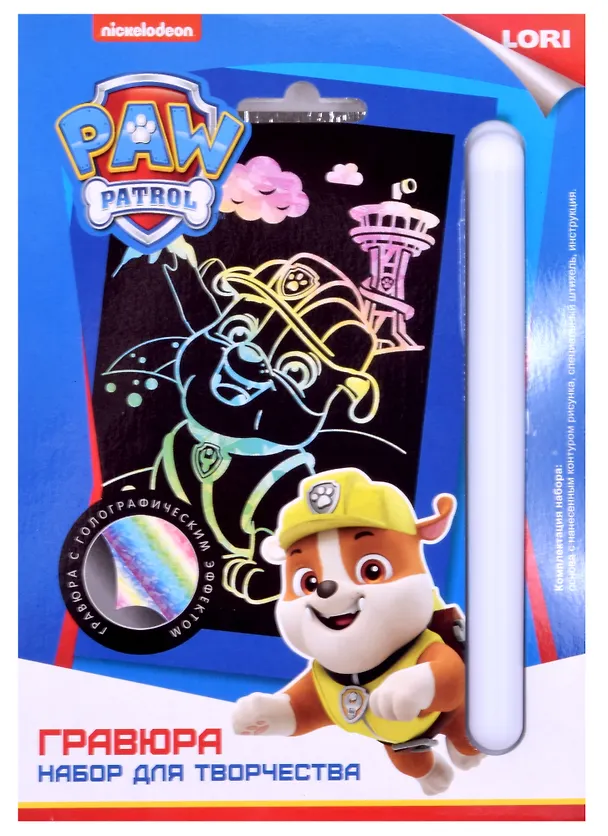 Гравюра- особый вид графического искусства. Сцарапывая верхний слой гравюры спеециальным штихелем, входящим в набор, ребенок может самостоятельно создать настоящее произведение искусства и почуствовать себя гравером. Готовую гравюру можно вставить в упаковку-рамку.