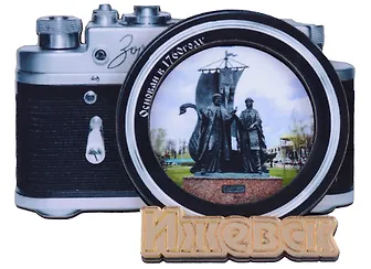 ГС Магнит Ижевск Фотоаппарат Достопримечательности города вид 1 с зеркальной надписью (дерево) (7,5см)
