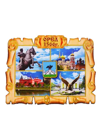 ГС Магнит Орел Свиток коллаж Достопримечательности города (дерево) (7,5 см)