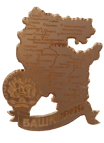 ГС Магнит УФА Карта Башкирии зеркальный золото (акрил) (7,5см)