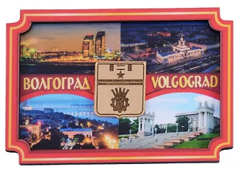 ГС Магнит Волгоград Коллаж Достопримечательности города с зеркальным гербом вид 2 (дерево) (7,5см)