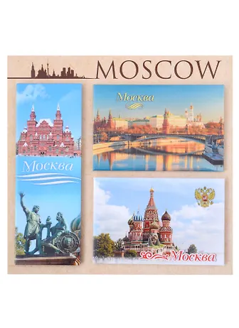 ГС Набор закатных магнитов № 1 Москва 55х80 2 шт 115х40 1 шт на крафт подложке (031004001н)