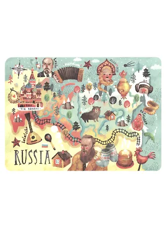 Открытка с изображением карты России.