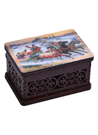 ГС Шкатулка малая резная с заливкой смола Тройка вид 2 (хдф) (95x65x52 мм)
