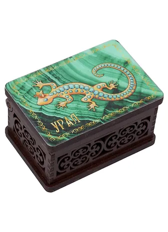 ГС Шкатулка малая резная с заливкой смола Урал вид 1 (хдф) (95x65x52)