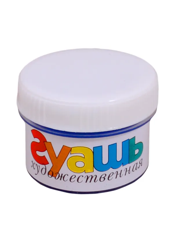Красивый насыщенно-голубой цвет, при разбавлении водой или если рисовать мокрой кистью проявляется нежно-голубой небесный оттенок, если рисовать по сухому ложится укрывисто и, как и положено гуаши, высыхая, оставляет матовую бархотную поверхность.