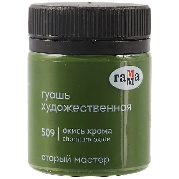 Прекрасная гуашь из серии «Старый мастер». Оттенок окись хрома, как, в принципе, и другие в «Старом мастере» хорош и сам по себе в чистом виде, и очень помогает разнообразить зелень в смесях (и не только, разумеется, зелень). Цвет насыщенный и густой, при высыхании становится теплым и бледноватым, как водится у гуаши. Баночка крепкая, как и в наборах здесь 40 куб. сантиметров, при засыхании легко размешивается с водой. Гуашь «Старый мастер» годится и для ученических работ, и для набросков и, думаю, для профессиональных работ.