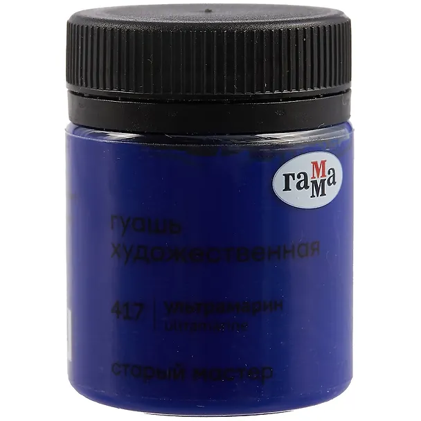 Серия "Старый Мастер" - это профессиональная линейка гуаши от Гамма и она действительно очень качественная. Ультрамарин включает в себя пигменты PB29 и PW4. Белила в краске совсем не ощущаются, поэтому и указывается, что цвет полупрозрачный, что редко для гуаши. Цвет яркий и звонкий, какой и должен быть ультрамарин. Консистенция не жидкая, сама краска не плесневеет. Расход экономный.