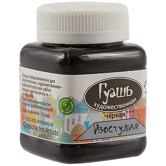 Краска гуашевая чёрная 100мл, банка, Аква-Колор