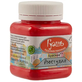 Краска гуашевая красная 100мл, банка, Аква-Колор