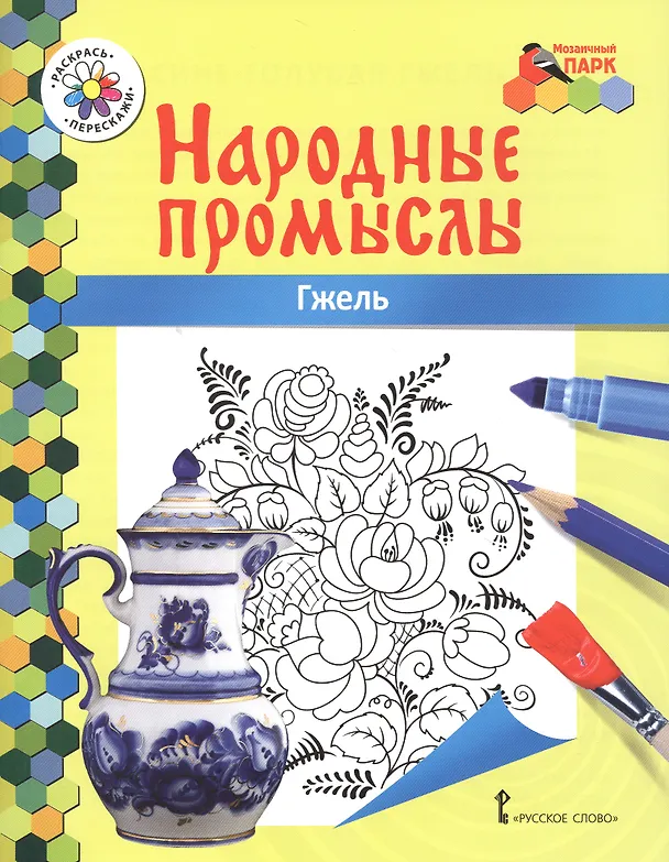 Серия книг-раскрасок "Народные промыслы". Раскраски включают увлекательные рассказы об истории таких русских народных промыслов, как Дымковская игрушка, хохлома, каргопольская игрушка, гжель и городецкая роспись. Текст сопровождается иллюстрациями для раскрашивания.